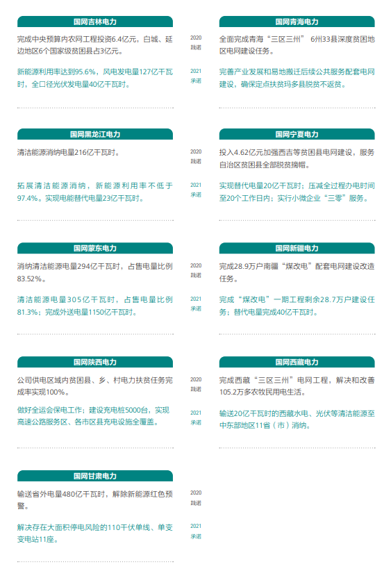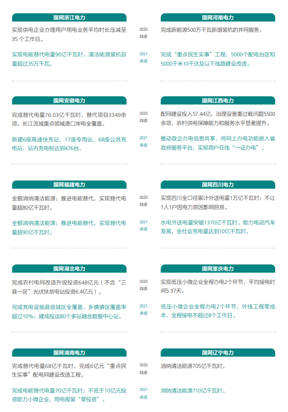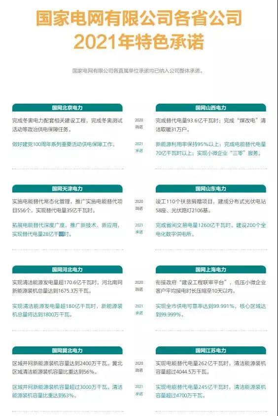 國家電網各省公司2021年特色承諾
