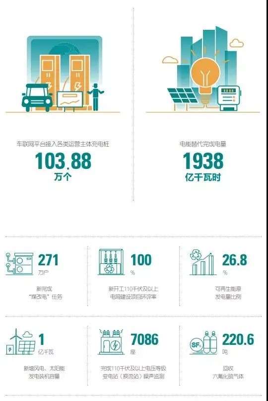 環境績效 · 清潔能源機組并網容量和上網電量均逐年攀升 · 電能替代電量創新高 · 累計建成電動汽車充電樁達17.2萬個