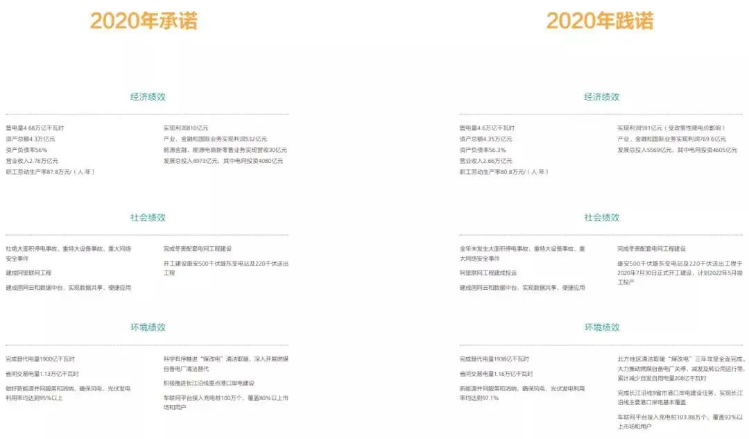 05履責承諾 2020年承諾與踐諾對比 · 受政策性降電價影響,原承諾2020年實現利潤810億元,現僅實現利潤591億元