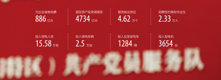 03履責行為 戰疫情 保供電 · 為企業減免電費886億元 · 固定資產投資調增至4734億元 · 提供就業崗位4.62萬個 · 招聘簽約高校畢業生2.33 萬人
