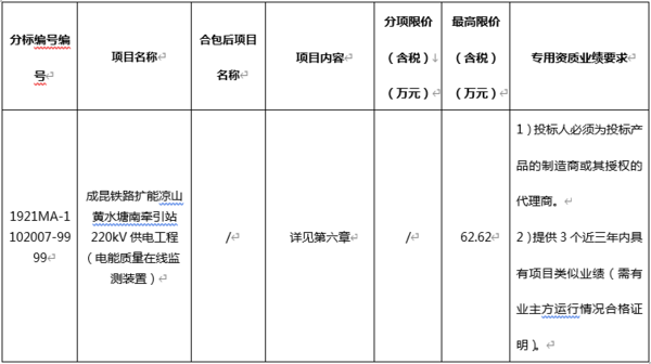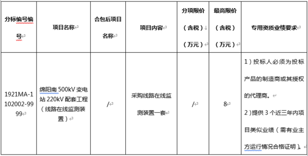 國網四川省電力公司綿陽公司2021年第一次物資公開競爭性談判授權采購公告本批采購項目建設資金已落實,項目單位為國網四川省電力公司綿陽供電公司。受國網四川省電力公司綿陽供電公司委托授權采購,國網四川省電力公司綿陽供電公司為本次采購的采購人。項目已具備采購條件,現對該批項目進行競爭性談判采購。采購人委托四川西星電力科技咨詢有限公司綿陽代理處(以下簡稱“采購代理機構”),采用公開競爭性談判采購方式邀請有興趣的合格應答人(以下簡稱“應答人”)就國網四川省電力公司綿陽供電公司授權采購項目提交密封的有競爭性的應答文件。