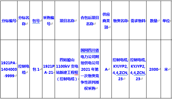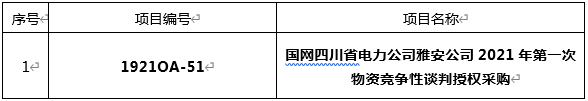 近日,國網四川省電力公司雅安公司、綿陽公司、阿壩供電公司分別發布2021年第一次物資采購公告。國網四川省電力公司雅安公司2021年第一次物資競爭性談判授權采購公告