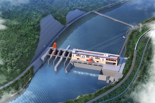 大渡河枕頭壩二級水電站效果圖 電站安裝6臺5萬千瓦燈泡貫流式水輪發電機組,總裝機容量30萬千瓦,多年平均年發電量15.03億千瓦時。工程建設總工期為64個月。樞紐由河床左側泄洪閘、河床右側河床式廠房、兩岸混凝土重力壩和魚道等建筑物組成,最大壩高54米。水庫正常蓄水位592米,總庫容0.122億立方米,調節庫容0.041億立方米。電站建成后以500千伏一級電壓出線接入四川電網。