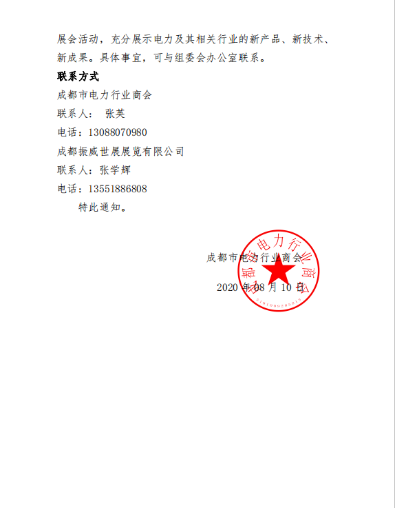 今日,成都市電力行業商會印發通知,邀請商會各會員單位和相關企業參展參會。通知原文如下: