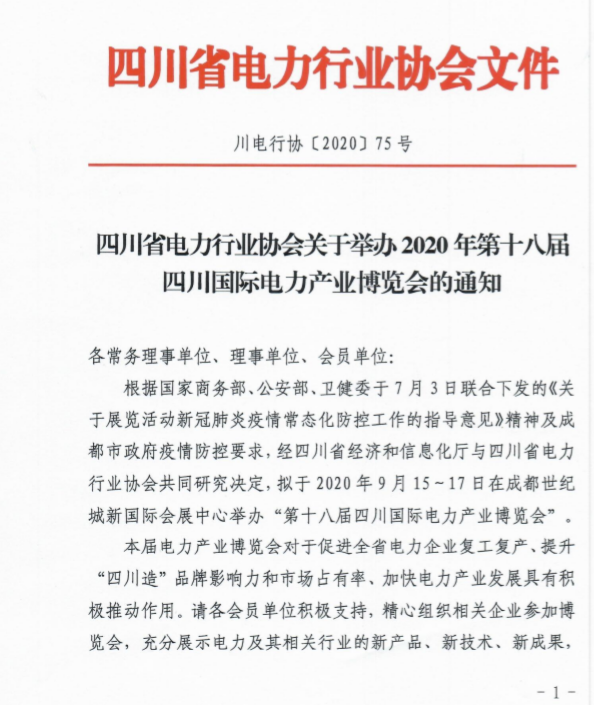 四川省電力行業(yè)協(xié)會關(guān)于舉辦2020年第十八屆四川國際電力產(chǎn)業(yè)博覽會的通知