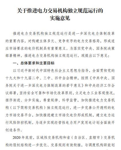 以下是《關于推進電力交易機構獨立規范運行的實施意見》全文: