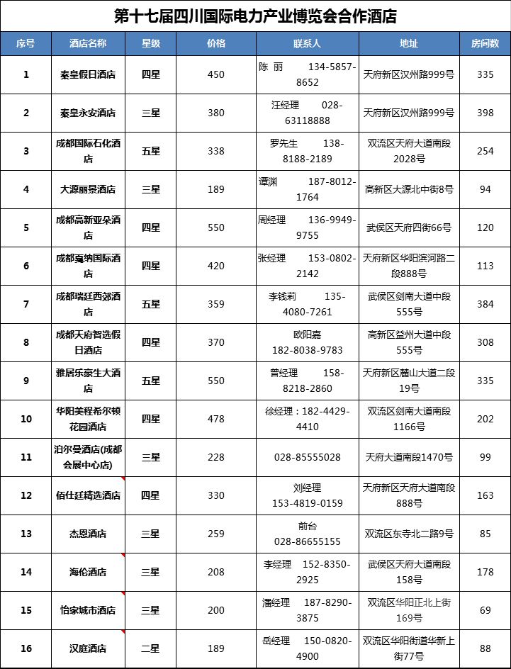 成都四月,溫差較大,早晚溫度較低,建議穿著長袖及外套。參觀期間預計會有小雨,建議攜帶雨具哦~ 好了,一切就緒, 下周三,你我,不見不散~ ![]() SIEP四川電力展 四川電力展 成都充電設備展 咨詢電話:何小姐 15881023660(同微信) 電子郵箱:2880143590@qq.com