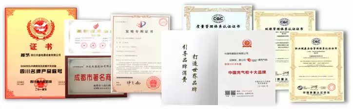 公司所有高壓產品均通過了國家型式試驗,30余種低壓產品獲得3C強制性認證,獲得專利20余項,并且公司嚴格實施并通過了ISO9001質量管理體系認證、ISO14001環境管理體系認證和OHSAS18001職業健康安全管理體系認證;被授予四川名牌、國家高新技術企業、充氣柜中國十大品牌、施耐德協議成套廠、ABB合作企業、西門子合作企業、納稅先進企業等榮譽稱號。