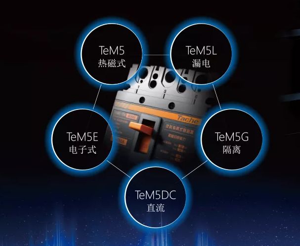 除此之外,作為天e星空系列的又一重要產品,TeM5塑殼斷路器能更好地滿足工業、直流行業、PB盤廠等行業客戶的特殊需求。 TeM5塑殼斷路器,擁有齊全的熱磁式,漏電,電子式,直流,隔離五大系列產品。此外,該系列還增加特殊功能用途產品:如過載報警不脫扣斷路器、A型漏電斷路器等。孿生式結構設計,各類型產品之間無縫銜接,帶來更便捷的使用體驗;一體式的家族化工業設計,外形統一精美。TeM5系列配備了齊全的內、外部附件,采用盒式化安裝,可自主安裝內部附件,輕松幫助客戶拓展產品功能,能更好地適應配電系統的需要。