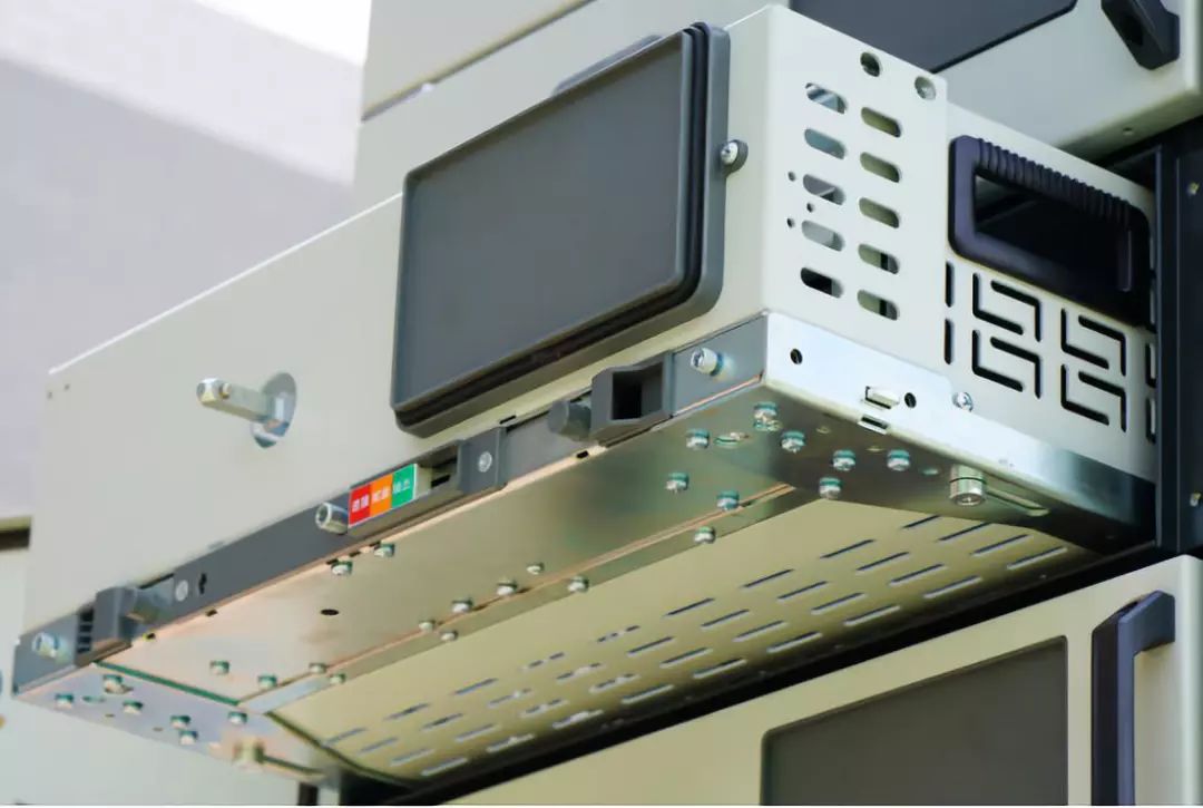 3、抽屜采用滾珠導軌設計,推拉靈活,并且具有到位鎖定、大間隙進入、高精度準確自動定位及防墜落功能;抽屜操作機構為手搖式省力結構,進出各位置均有鎖定及解鎖裝置,防止誤操作。(圖3)