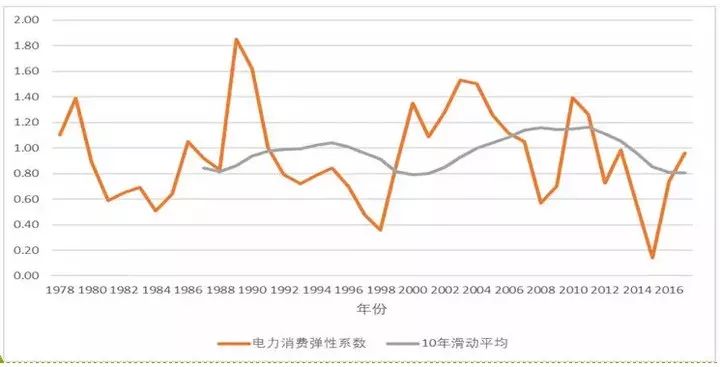 ▲1978-2017年中國電力消費彈性系數(shù)變化情況