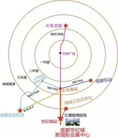 火車北站:乘坐地鐵1號線,到世紀城站下。 成都東站:乘坐地鐵7號線,到火車南站換乘1號線,到世紀城站下。 雙流機場:乘坐出租車,共15公里,約花費35元。 乘坐10號線,到太平園站換乘7號線,到火車南站換乘1號線,到世紀城站下。 乘坐機場大巴,到達世紀城站下。 自駕:在繞城高速繞城立交天府站進入紅星路南延線。