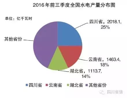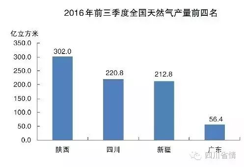 清潔能源產量占比高于全國 從全社會能源的生產構成來看。2015年,四川全社會一次能源生產構成中天然氣占比為20.3%,比全國高15.4個百分點;一次電力占比為54.1%,比全國高39.6個百分點。 從全社會能源消費構成來看。2015年,全社會能源消費構成中,四川天然氣消費量占全省能源消費總量的11.4%,比全國高5.5個百分點;一次電力消費量占45.9%,比全國高33.9個百分點。 水力發電居全國第一 從2016年前三季度規模以上工業的水力發電量看,四川水電產量2018.1億千瓦時,同比增長7.4%,占前三季度全省發電量的86.6%,占全國水力發電量的24.9%,占比近四分之一,產量穩居全國第一。 與其他水電大省相比,2016年前三季度,四川全省水力發電量分別比云南、湖北多904.4和554.7億千瓦時;水電占比分別比云南、湖北高4.2和27.0個百分點。 ![]() 天然氣產量次于陜西居第二 2016年前三季度,在主要天然氣生產省份產量都有所下降的情況下,四川天然氣產量仍然保持兩位數的增長速度,產量220.8億立方米,同比增長13.5%,產量躍居全國第二位,僅低于陜西省,產量分別比第三名新疆和第四名廣東高8.0和164.4億立方米,且四川天然氣產量占全國的22.0%,占比較上年有所提高。