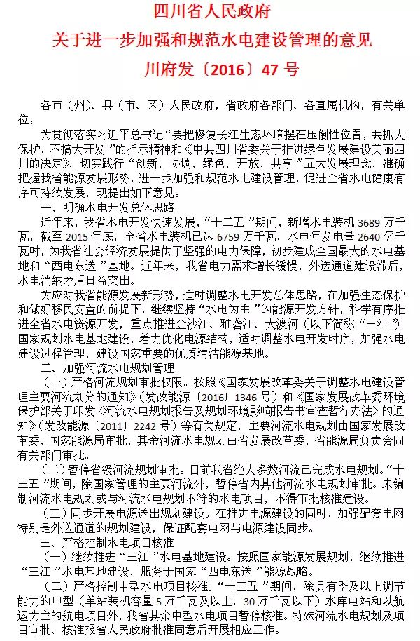 《四川省人民政府關于進一步加強和規范水電建設管理的意見》解讀發表時間:2016-10-14 17:21
