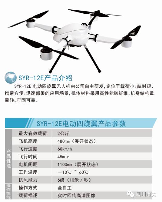SYR-12E電動四旋翼由公司自主研發,定位于載荷小、航時短、攜帶方便、迅速部署的應用場景,機體材料采用高性能碳纖維,機身結構重量輕,牢固可靠。可廣泛應用于:應急反恐、地質勘查、航空攝影、環境監控、電力巡線、城市管理等行業。