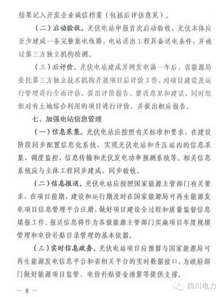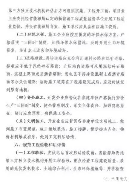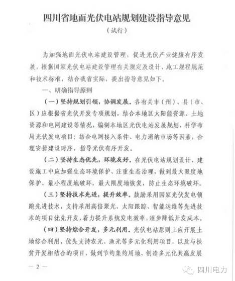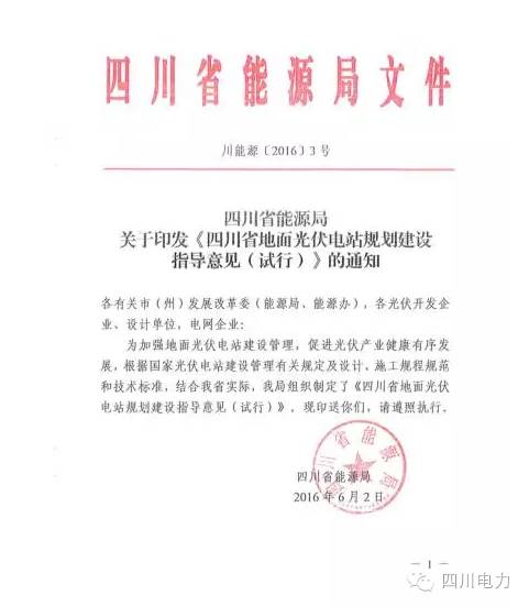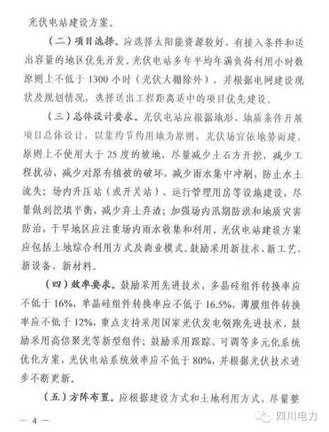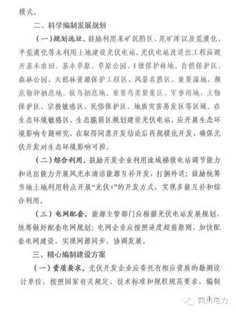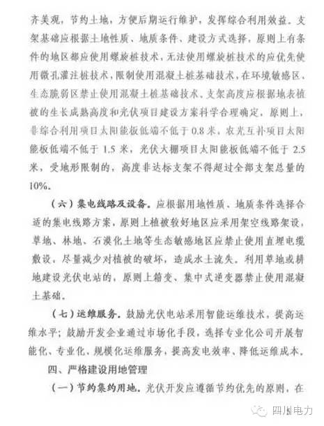 日前,四川省能源局下發《四川省地面光伏電站規劃建設指導意見(試行)》,對該省地面光伏電站建設從選址、設計到施工驗收做了明確規定,全文如下: