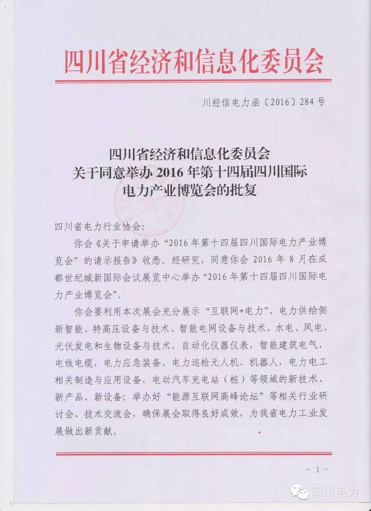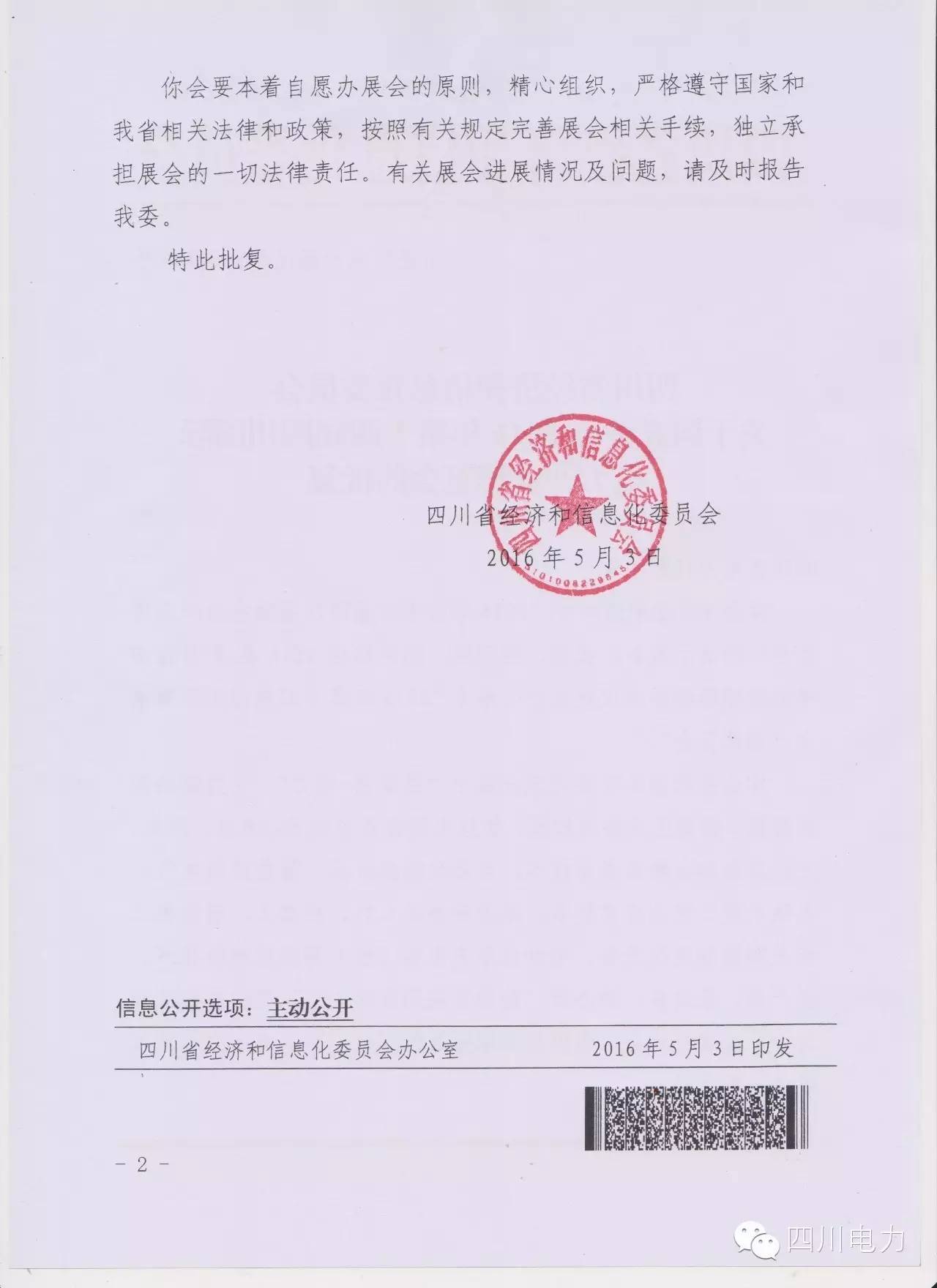 四川省經信委同意舉辦第14屆四川電力展的批復