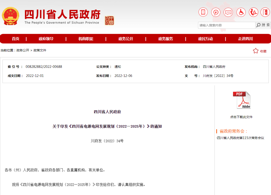 新增裝機規模5065千瓦!四川電源電網三年發展規劃來了發表時間:2022-12-12 11:47 四川省人民政府日前印發《四川省電源電網發展規劃(2022—2025年)》(以下簡稱《規劃》),明確四川省未來三年電源電網發展的主要任務、重大工程和改革舉措。《規劃》提出到2025年,基本建成具備較強抗風險能力的電力系統,電力裝機規模再上新臺階、達16560萬千瓦。