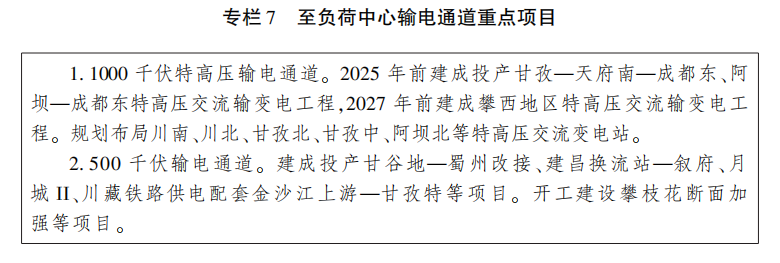 圍繞“送得出”拓展至省內負荷中心輸電通道。提升關鍵斷面送電能力,滿足“三江”大型水電、“三州一市”新能源基地向省內負荷中心送電需求,推動 1000千伏特高壓交流電網向北、向西延伸,完善拓展川渝特高壓交流環網。
