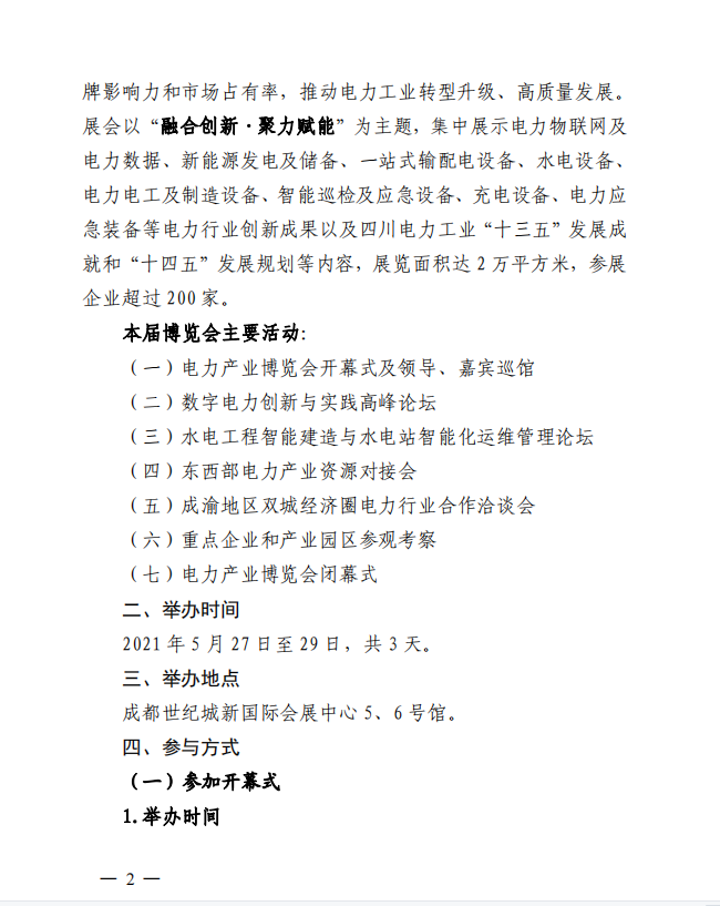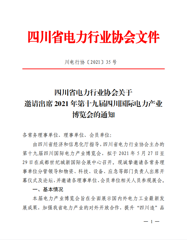 四川省電力行業協會邀請參觀2021年第十九屆四川國際電力產業博覽會發表時間:2021-05-10 15:58作者:馬上來電 ![]()